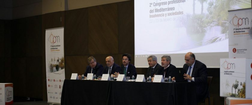 Este jueves 22 dio comienzo el 2º Congreso profesional del Mediterráneo: insolvencia y sociedades. En la mesa inaugural han participado, el secretario general técnico del Ministerio de Justicia, D. José Amérigo Alonso, que ha estado acompañado por el decano del Ilustre Colegio Oficial de Economistas de Alicante, D. Francisco Menargues García; el decano del Ilustre Colegio Oficial de Economistas de Murcia, D. Ramón Madrid Nicolás; el decano del Ilustre Colegio Provincial de Abogados de Alicante, D. Fernando Candela Martínez y el presidente del Consejo General de Economistas, D. Valentín Pich.