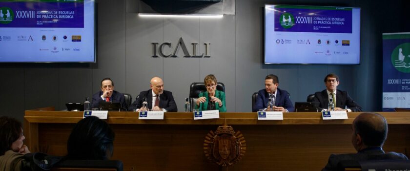 La presidenta del Consejo General de la Abogacía Española (CGAE), Victoria Ortega, ha inaugurado esta mañana las XXXVIII Jornadas de Formación y Escuelas de Práctica Jurídica que tendrán lugar hasta mañana en Ilustre Colegio de la Abogacía de Alicante (ICALI) y que reúne a representantes de colegios de toda España. En el acto han estado presentes también el decano del ICALI, Fernando Candela, el presidente de la Comisión de Formación del CGAE, Carlos Fuentenebro, el presidente de la Audiencia Provincial, Juan Carlos Cerón, y el diputado provincial de Alicante, Juan de Dios Navarro.